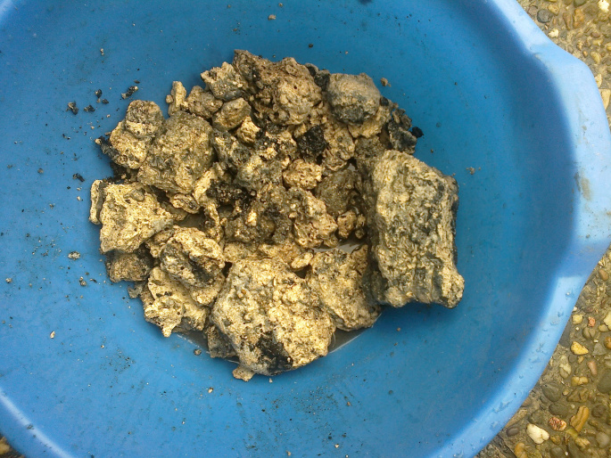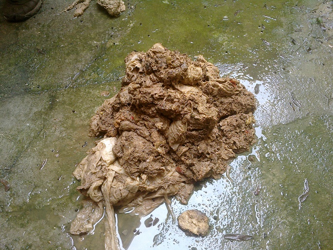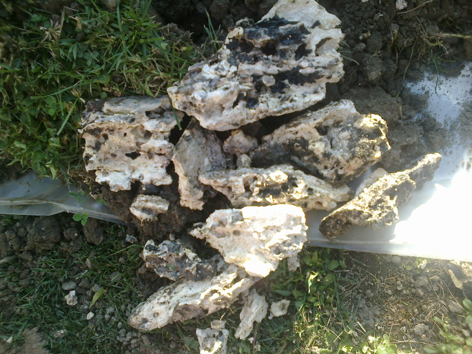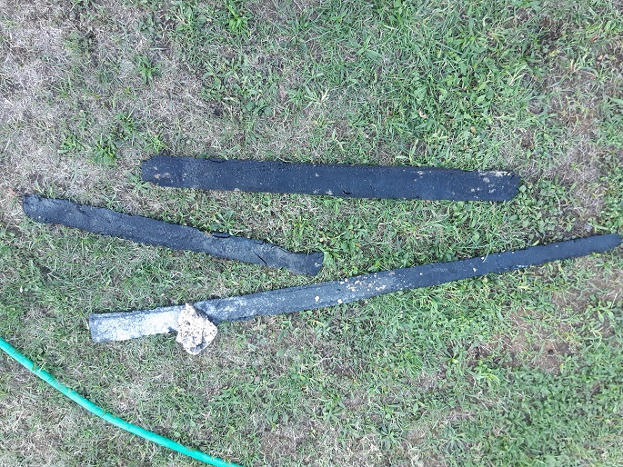 „Kaiševi“ od bitumena koji su izvađeni iz cevi. Vlasnik kuće pretpostavlja da je to sipao njegov pokojni otac pokušavajući da što bolje zaštiti cev